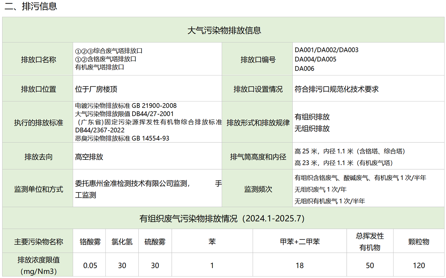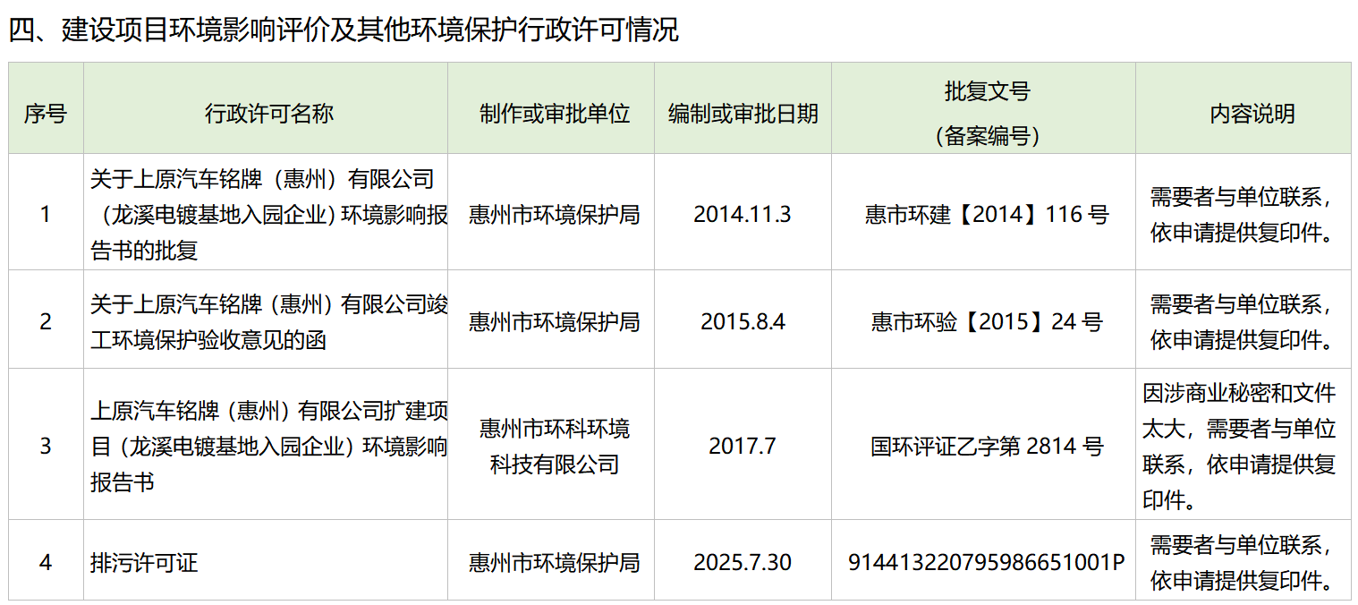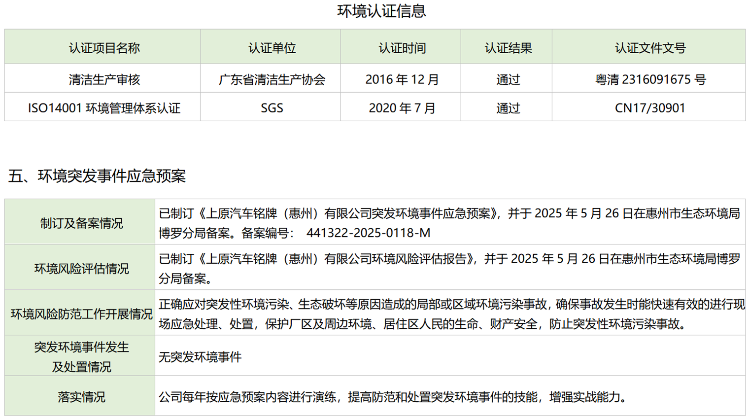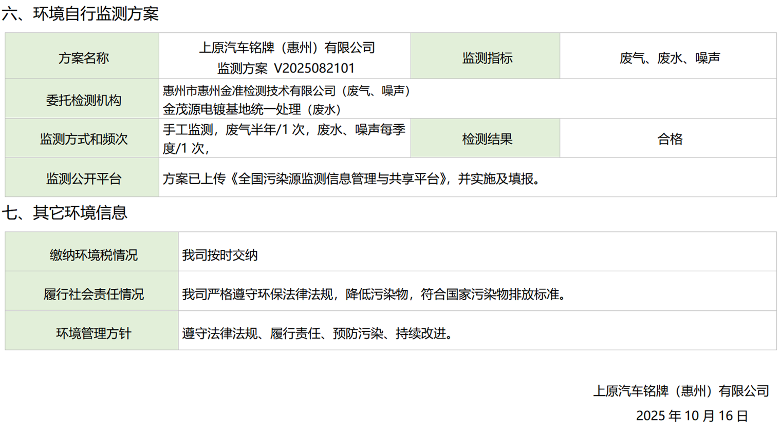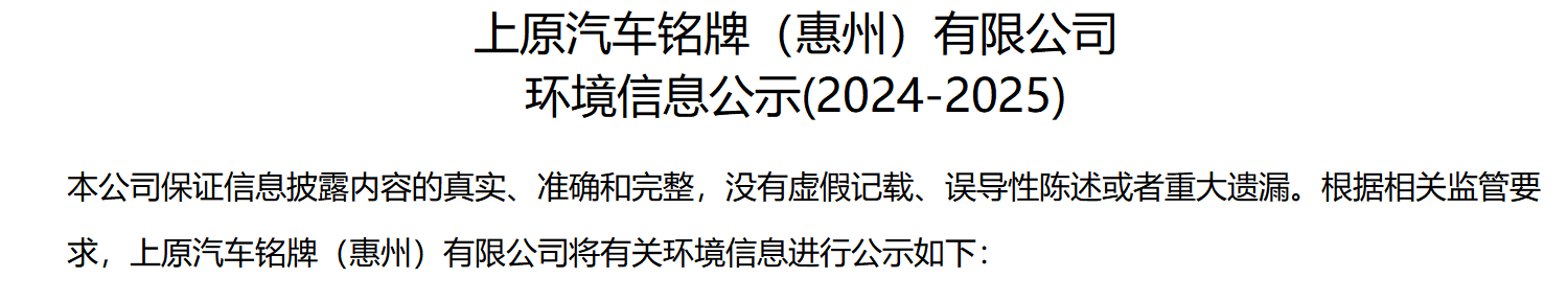上原汽车铭牌(惠州)有限公司环境信息公示(2024~2025)